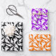 This custom set of wrapping paper sheets features a cute Halloween ghost pattern design with black, orange and purple sheets. Perfect to wrap gifts for an October birthday for fan of Halloween and spooky season.