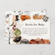 This adorable Halloween-themed Books for Baby card is a sweet way to build baby's first library! Designed with cosy watercolor illustrations of ghosts, pumpkins, fall leaves, and a bubbling cauldron, it fits perfectly with autumn and October baby showers. Request guests to bring a book instead of a card — whether new or well-loved, each story will be a cherished memory. Pairs beautifully with any cute and spooky baby shower invitation.