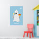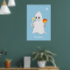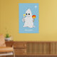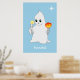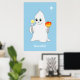 Cute Halloween Ghost & Pumpkin on Light Blue Poster