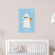 Cute Halloween ghost holding a candle & pumpkin on light blue Poster. Bootiful text can be personalised.