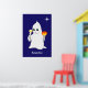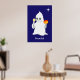 Cute Halloween Ghost & Pumpkin on Navy Blue Poster