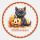 Cute Halloween Sticker with a black kitten sitting in pumpkins. These Halloween stickers are the perfect way to add a spooky touch to your belongings! They feature a cute and spooky design with a black kitten and pumpkins. The stickers are made of high-quality materials. They can be used on a variety of surfaces, including laptops, water bottles, notebooks, and more. Order your Halloween Stickers with Black Kitten and Pumpkins today and make your belongings stand out from the crowd!