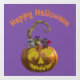 Three cute mice dressed in Halloween costumes – a witch, a devil and a jester – sit together on a smiling jack o’ lantern. They are ready for Halloween trick-or-treating.
