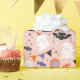 Cute Halloween Party Ghosts with Balloons, Bats, Candy and stars on pink background