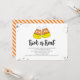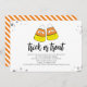 Host a funny Halloween party with this cute, fun candy corn invitation! Featuring stylish calligraphy script and a cool typography design, this invite sets the perfect tone for a trick-or-treat celebration. Designed for fall autumn parties with kids or adults, it showcases a whimsical cartoon illustration, a simple minimalist layout, and playful orange striped accents. Get ready for a spooktacular night—personalise your invite today!