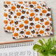 Super cute halloween pattern. In this illustration you can see pumpkins, spiders, owls, stars and candy. Colour scheme of this halloween design is orange, black and white.