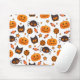 Super cute halloween pattern. In this illustration you can see pumpkins, spiders, owls, stars and candy. Colour scheme of this halloween design is orange, black and white.