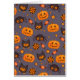 Super cute halloween pattern. In this illustration you can see pumpkins, spiders, owls, stars and candy. The pattern design is on purple polka dot background.