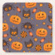 Cute Halloween Pattern Purple Background Square Paper Coaster
