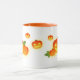 This Halloween themed orange combo mug features cute smiling carved pumpkins in different sizes.