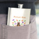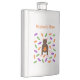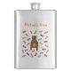This awesome flask features a graphic image of a cute little brown rat with pink ears tail and feet. The rat is holding an orange pumpkin between its paws. There is a collection of green, purple and orange candy sweets surrounding the little rat. This design is perfect for any rat lover or owner this Halloween.