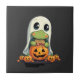 Cute Halloween Turtle Ghost with Candy (5) Ceramic Tile