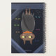 Set against a rich midnight hue, a cute little brown bat with big yellow peepers, wears a dapper orange bow tie and hangs about an old barn. Colourful mysterious eyes looking to-and-fro inhabit the background space.