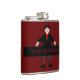 This awesome hip flask features a digital art image of a creepy but cute Halloween Vampire. The vampire has spiky black hair, a red shirt and black jacket with blood red heart shaped buttons on it. He has a creepy smile and long white fangs. He also has yellow fingernails, purple socks and black shoes with gold buckles on them. His arms are open welcoming you for an evil embrace. There is funny custom text on the front so you can include the name of the recipient followed by the words only drink blood.