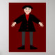 This awesome poster features a digital art image of a creepy but cute Halloween Vampire. The vampire has spiky black hair, a red shirt and black jacket with blood red heart shaped buttons on it. He has a creepy smile and long white fangs. He also has yellow fingernails, purple socks and black shoes with gold buckles on them. His arms are open welcoming you for an evil embrace.