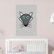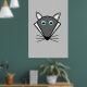 This poster features a kawaii style cartoon of a cute grey Halloween Wolf with pointed ears, bright blue eyes and black nose surrounded by whiskers. This cute wolf is perfect for Halloween or for animal lovers.