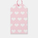 Cute trendy hand drawn hamster holding a heart gift tags featuring a white hearts and pink patterned back.