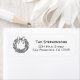 A fun, whimsical Christmas return address label design. With a black, hand drawn Christmas wreath set against a white background, easily change the typography with your own name and address.