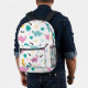 This backpack design features a cute hand-drawn dinosaur pattern in girly colours for your personalisation.