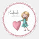 Personalise your business stationery with these exclusive Handmade with Love stickers. The illustration has a blonde girl with a turquoise dress holding a giant pink heart. The sticker is complemented with a cute hand drawn scalloped circle. Illustrated and designed by Patricia Alvarez.