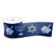 Beautiful Hanukkah ribbon in pretty blue with a cool pattern of Judaism star, dreidel for fun Chanukah games, and the Jewish menorah for the holiday.