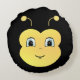 Cute happy bee face round throw pillow. Ideal for everyone. Bring a happy face to your space! Pamper yourself with a happy face or bring some joy to everyone.