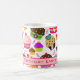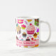 A beautiful cute cupcake mug to say happy birthday to your favourite cake lover. Perfect for best friends. Cupcakes and candy make up this sweet and colourful pattern - with pink typography. Add your own message or name to personalise.