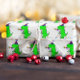 Dino wrapping paper birthday roll for boy. Cute happy birthday dinosaur with confetti, hat and blower.