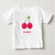 Cute and stylish shirt featuring adorable kawaii smiling cherries and an editable text placeholder for your name in a modern bold script.