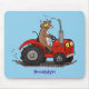 This funny brown cow is driving a red tractor. Lots of fun for the farmer or cow lover!