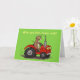 Cute happy cow driving tractor cartoon birthday card