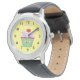 The leather band makes it seem like an “older kids” watch. Easy to read the time. Clear printing and image.
