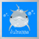 This happy bottle nose dolphin is blowing bubbles! Drawn in cute cartoon illustration style on a blue background.