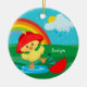 Celebrate the rain with this cute happy duck Christmas holiday ornament. Ornament has a joyful yellow duck splashing in a puddle. The duck is wearing a polka dot hat and has a red umbrella. In the sky is a beautiful colourful rainbow, sun, clouds, and rain. Personalise the ornament with the year and your child's first name and photo.