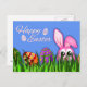 Cute Happy Easter Bunny and Eggs in Grass Postcard