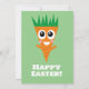 Cute Happy Easter Carrot Card. Cutesy cartoon healthy vegetable springtime easter card for children.