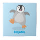 Send a happy hello from Antarctica from a warm fluffy penguin! This cute emperor penguin chick is jumping for joy. Drawn in fun cartoon style.