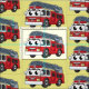 Cute happy fire engine cartoon fabric