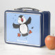 Cute happy flying puffin blue cartoon illustration metal lunch box