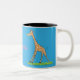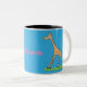 Cute happy giraffe with butterfly cartoon Two-Tone coffee mug