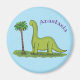Cute happy green brontosaurus dinosaur cartoon magnet