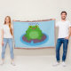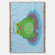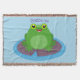 Cute happy green frog cartoon illustration throw blanket