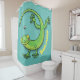 Cute happy green gecko greetings with bug cartoon shower curtain