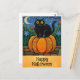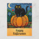 Cute Happy Halloween Black Cat Orange Pumpkin Postcard