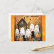 Wish everyone a happy Halloween with this postcard featuring a cute ghost, black cat, pumpkin and haunted house design!