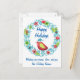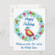 Cute Happy Holidays Flower Wreath with Red Bird Holiday Postcard