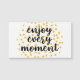 Modern, creative graphic design of a saying "Enjoy Every Moment". Playful, cute circles with urban, calligraphic, handwritten typography in yellow and black colours.