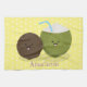 Cute happy kawaii coconuts cartoon illustration tea towel