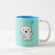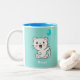 Cute Happy Kitty Cat with Balloon on Turquoise Two Two-Tone Coffee Mug
