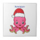 Cute happy octopus wearing Christmas hat cartoon Ceramic Tile